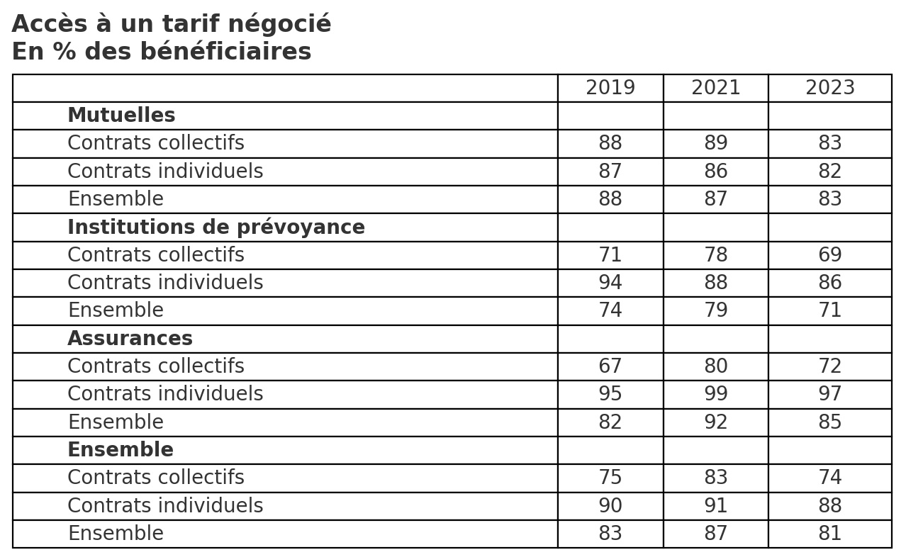 Enquête Drees Ocam – Accès à un tarif négocié 2019-2023 réseaux de soins